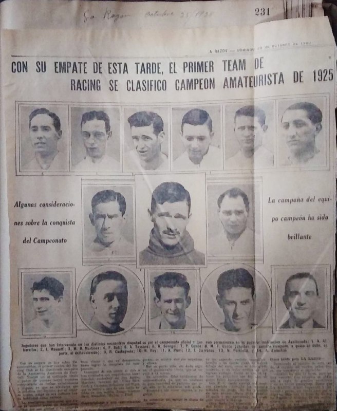 A campanha de 1925, a números frios, foi uma demonstração clara de superioridade. Racing disputou 24 partidas e terminou, pela quinta vez, campeão de modo invicto: venceu quinze e empatou nove. Com 40 gols marcados e apenas 10 sofridos, somou 39 pontos, ficando três pontos à frente de San Lorenzo e sete à frente de Platense e Almagro. O livro Héroes de Tiento, de Carlos Aira, coloca alguns asteriscos após vasculhar recortes da época, contudo. Ao menos, no primeiro capítulo e no último daquela campanha.