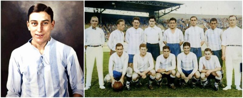 Na Argentina prata olímpica de 1928: técnico Lago Millán, Médici, Bidoglio, Bosio, Monti, Paternoster, Evaristo e massagista Sola; Carricaberry, Tarasconi, Ferreira, Gainzarain e Orsi.