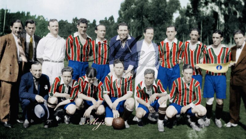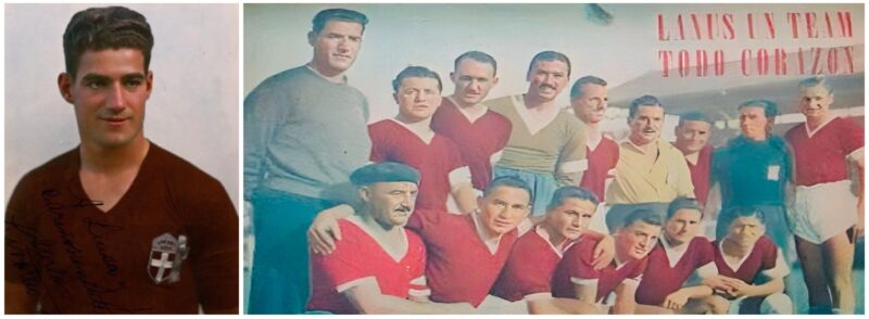 A camisa grená que ele veste à esquerda é a do Livorno mesmo. À direita, Volante é o primeiro em pé, como técnico do Lanús em 1945