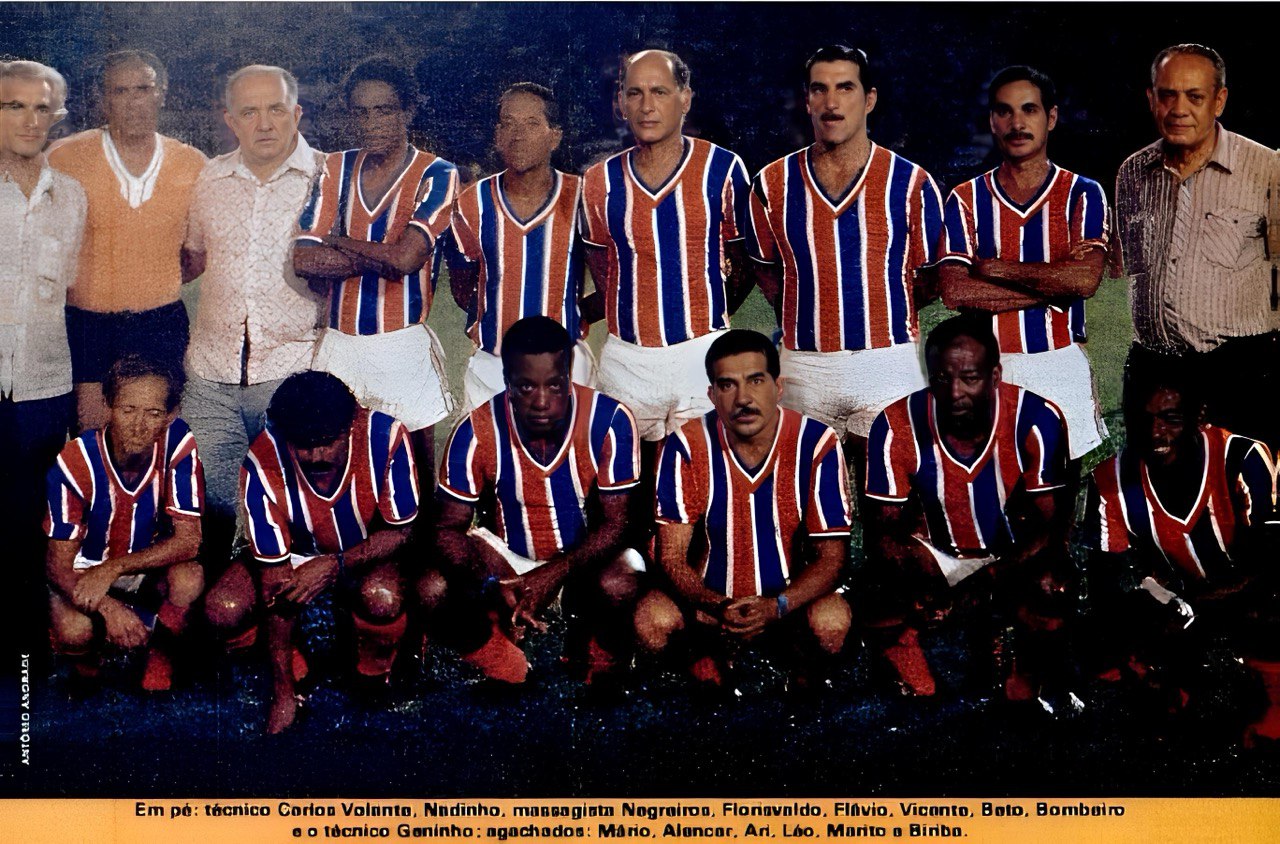 Os campeões nacionais pelo Bahia em 1959 vinte anos depois, em 1979, em reportagem da Placar. Venceram os veteranos do Vitória por 3-0!