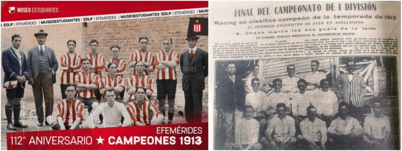 O 1º título argentino da dupla foi em 1913. O Estudiantes sagrou-se em 23 de novembro na sua liga, então dissidente. O Racing, em outra liga, sagrou-se em 28 de dezembro e venceria também os seis torneios seguintes. Já o time de La Plata precisou esperar até 1967