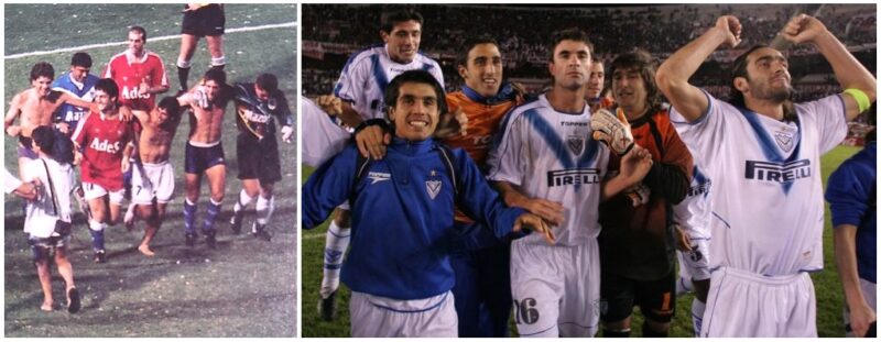 Também concorrendo contra o Racing pelo título, o Vélez prevaleceu no Apertura 1995 (note as camisas do Independiente na volta olímpica) e no Clausura 2005