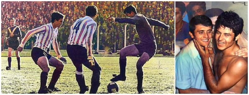 O Vélez do bailarino Daniel Willington sorriu para cima do Racing nas decisões de 1968. À direita, Willington é parabenizado por Roberto Perfumo, o racinguista de perfil na imagem esquerda: cavalheirismo para um time “simpático”