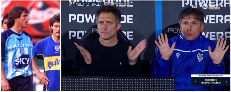 Os gêmeos Barros Schelotto como adversários e como dupla técnica. No Vélez, o ex-racinguista Gustavo se distingue do irmão através da franja. É o mais recente campeão nos dois