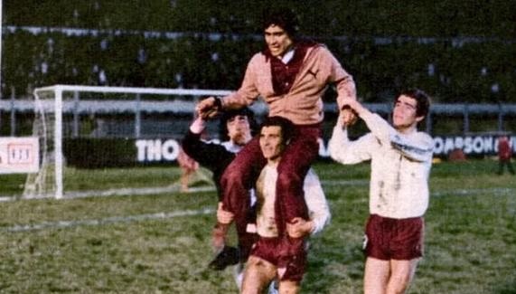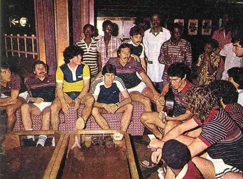 Tocando na concentração do Independiente em 1974, entre Daniel Bertoni e Agustín Balbuena