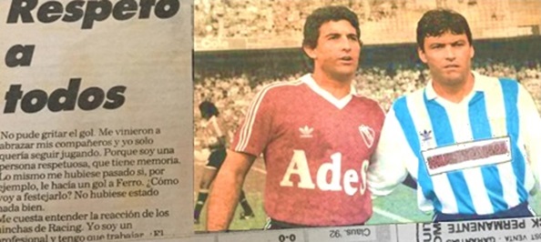 “Respeito todos”, diz ele após o clássico em que aplicou a lei do ex: em chamada pela paz, posou ao lado de Néstor Clausen, por sua vez um ex-Independiente que estava no Racing (Clausen, curiosamente, reviraria a casaca e voltaria ao Rojo em 1995!)