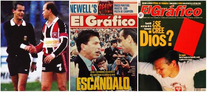 Em 1996, Castrilli foi sondado para dirigir um Boca x Vélez. Quem vencesse ficaria na liderança isolada do Clausura. Contamos aqui como foi: a embalada dupla Maradona e Caniggia tramou o primeiro gol, anotado pelo atacante loiro. A confusão começou cinco minutos depois e para ser justo Castrilli foi atrapalhado por seu bandeirinha, que correu ao meio-campo para sinalizar um gol inexistente: Carlos Navarro Montoya impedira que a bola cabeceada por Patricio Camps passasse da linha.