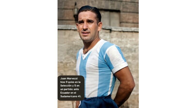 Pobre Equador. Apenas em 2015 conseguiu sua primeira vitória sobre a Argentina na casa rival. Em tempos mais distantes, os tricolores eram comuns sacos de pancadas da Albiceleste. Os equatorianos sofreram duas vezes cinco gols de um só jogador, recorde nas estatísticas argentinas e também na Copa América. A primeira dessas ocasiões faz hoje 75 anos. Seu autor foi o centroavante Juan Andrés Marvezy, o maior artilheiro da história do Tigre. Também é grafado como Marvezi ou Marvezzi – segundo o historiador Esteban Bekerman, contudo, o registro oficial seria Marvezy.