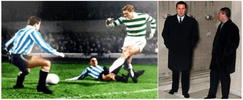 Em junho, o campeão europeu foi o convidado pelo Real Madrid para o jogo de despedida do argentino Di Stéfano. O capitão Billy McNeill, presente nas duas imagens, logo sentiu ao subir os degraus do Cilindro que o Mundial Interclubes não seria nada amistoso