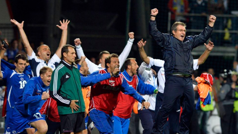 Agora treinador, celebra (dé óculos) a classificação bósnia à Copa do Mundo
